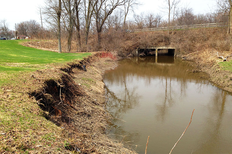 Niswander Environmental’s involvement in Project Clarity’s BMP’s includes mainly the design and construction of two-stage ditches surrounding agricultural fields. Common agricultural ditches tend to be steep sloped, and do little to prevent runoff and erosion. Runoff from agricultural fields often contains high amounts of sediment carrying phosphorus and nitrogen from fertilizer. Such chemicals can have a very negative impact on water quality surrounding these fields. The two-stage ditches designed by Niswander Environmental include a sloped bank and a flat shelf on each side of the ditch. The bank and shelf slow the flow of runoff, and native vegetation planted in the two-stage ditch filters out sediment and harmful chemicals before they can reach water.